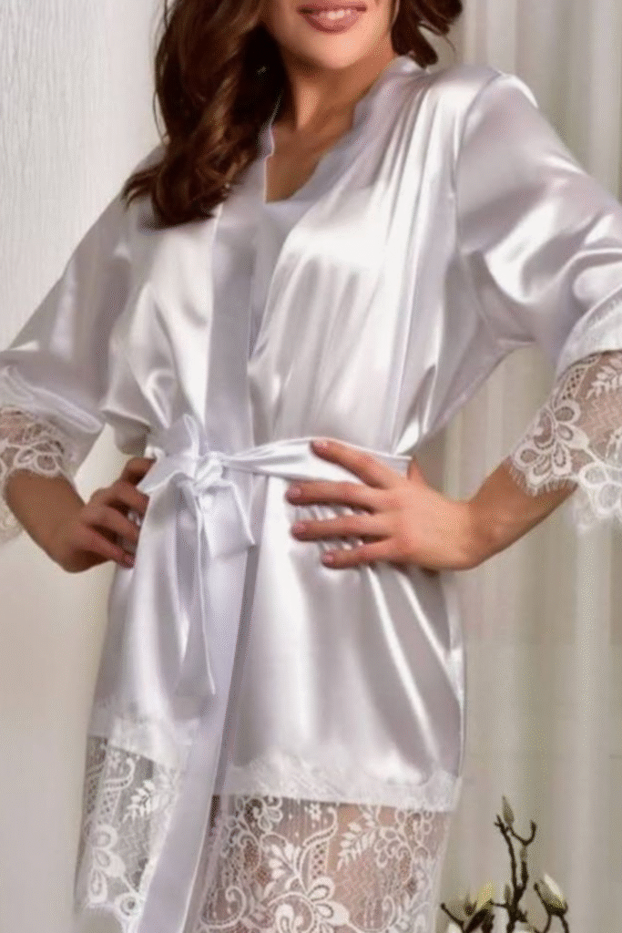 Sinta-se como uma noiva elegante e sofisticada com nossos robes de noiva com barrado em renda. Confortáveis, românticos e perfeitos para o seu grande dia.