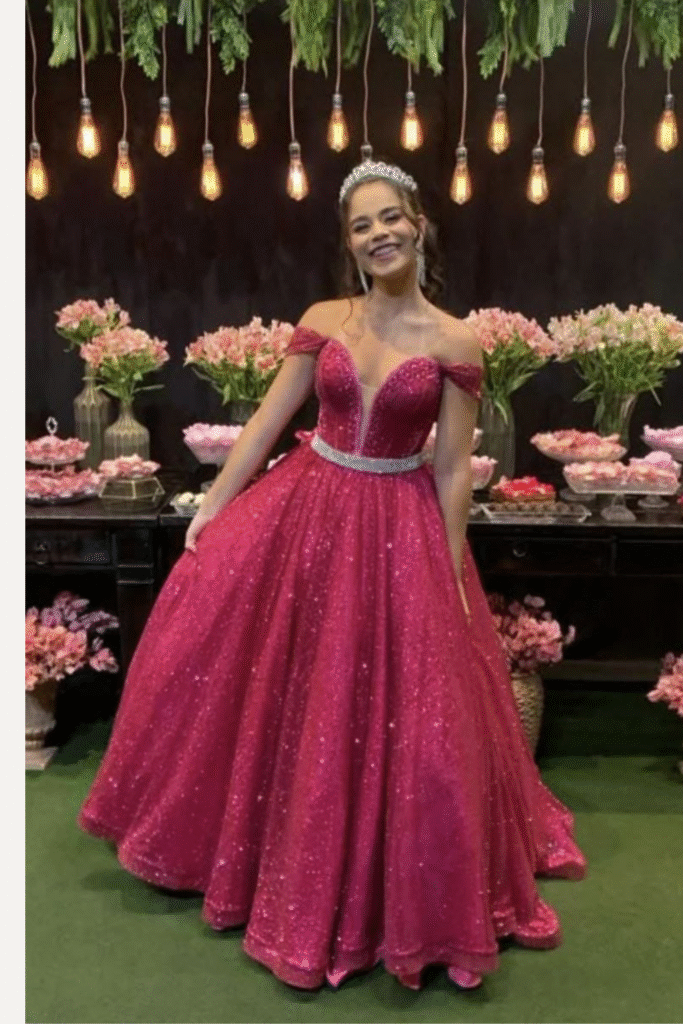 Encante-se com a elegância deste vestido estilo princesa. Com um corpete estruturado que valoriza a silhueta e uma saia fluida, ele proporciona um caimento sofisticado e impecável. Perfeito para debutantes que desejam um visual clássico, delicado e inesquecível para a grande noite.
