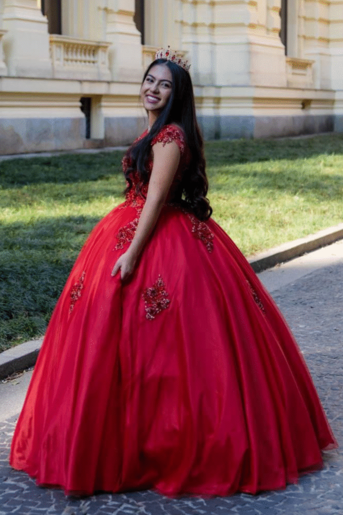 Deixe todos os olhares voltados para você em sua festa de debutante com nossa opção de locação de vestido, todo bordado a mão, com saia volumosa vermelho. Com nossa seleção de estilos românticos e charmosos, você vai se sentir como uma verdadeira princesa em seu grande dia . Reserve agora e encante a todos com seu vestido deslumbrante!